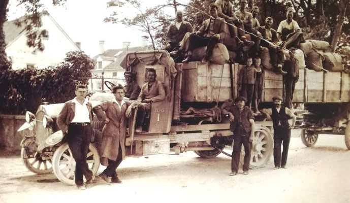 Foto 1: Der erste Lastwagen der Wasenbrucker Filztuchfabrik, um 1930 (Kurt Tobler)